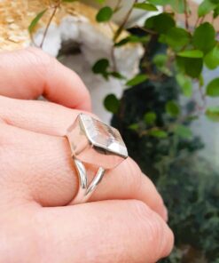 Mäekristall fassett hõbesõrmus