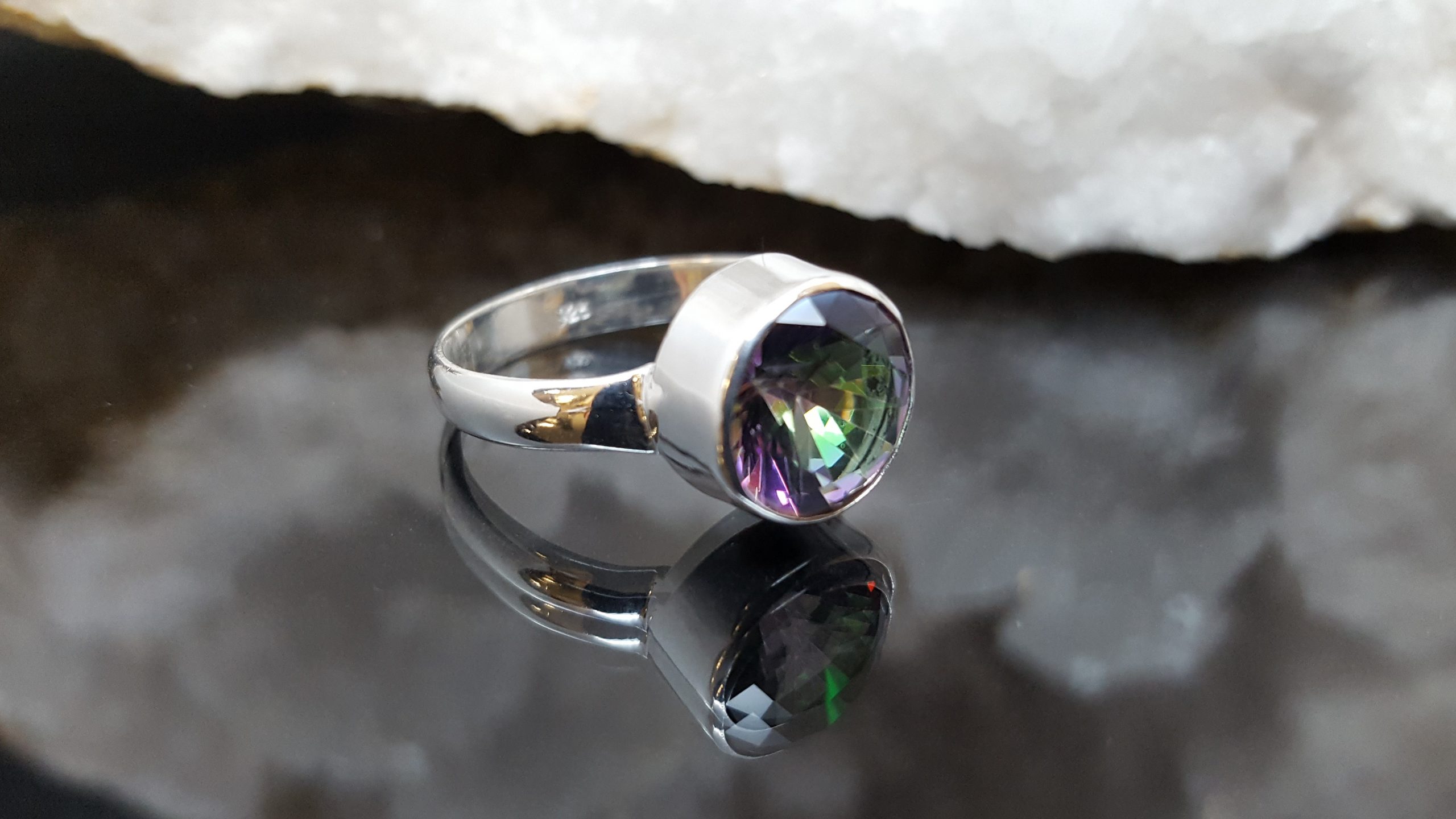 Müstilise kvartsiga hõbesõrmus